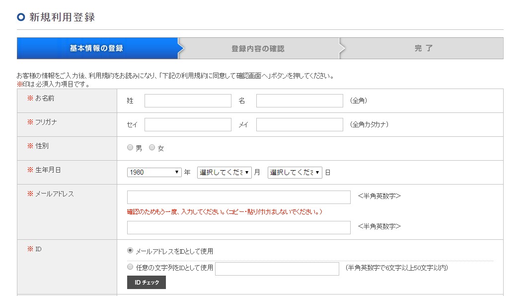 選擇利用登録はこちら註冊帳號