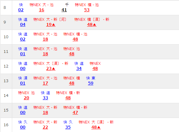點選欲搭乘的時段,點進去之後可以看該列車停靠站,表上的時代表幾點,畫橫線的數字代表幾分。