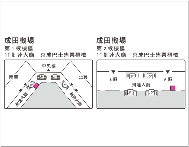 售票地點:成田機場入境大廳內詢問處 + 利木津巴士售票處 (或 新宿站西口的巴士售票處、TCAT 東京城市航空總站3樓)