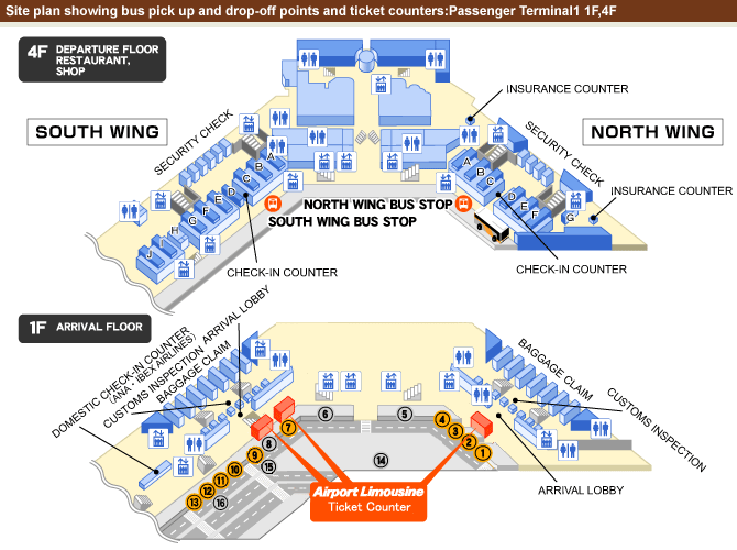 而第一航廈則是在入境大廳南或北翼各有購票處